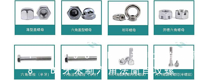 另像ANSI、ASME等的螺紋是以英寸為單位的稱為美標螺紋。除了公制螺紋和美制螺紋外還有一種BSW—英制標準,其螺紋也是以英寸為單位,俗稱惠氏螺紋。 公制螺紋是以MM(毫米)為單位,它的牙尖角為60度。美制螺紋和英制螺紋都是 · ASME B18.2.1,方頭、六角、大六角頭和斜頭螺栓,以及六角、大六角、六角法蘭面、花形頭和尖螺釘(英制系列):–進行了重新編排,方便使用。–增加了六角法蘭面和花形頭螺釘設計及量規–把大六角頭螺栓的尺寸范圍擴